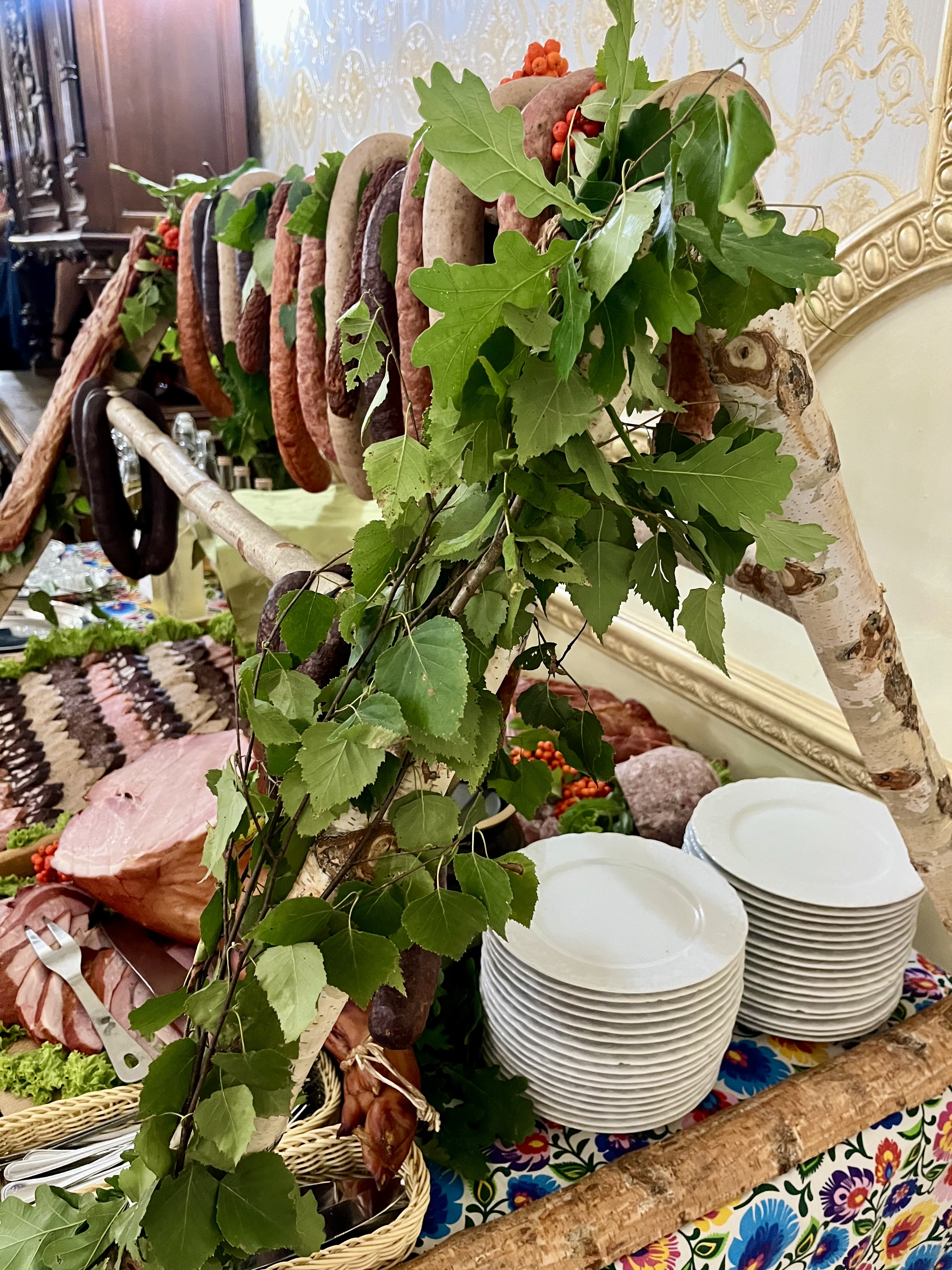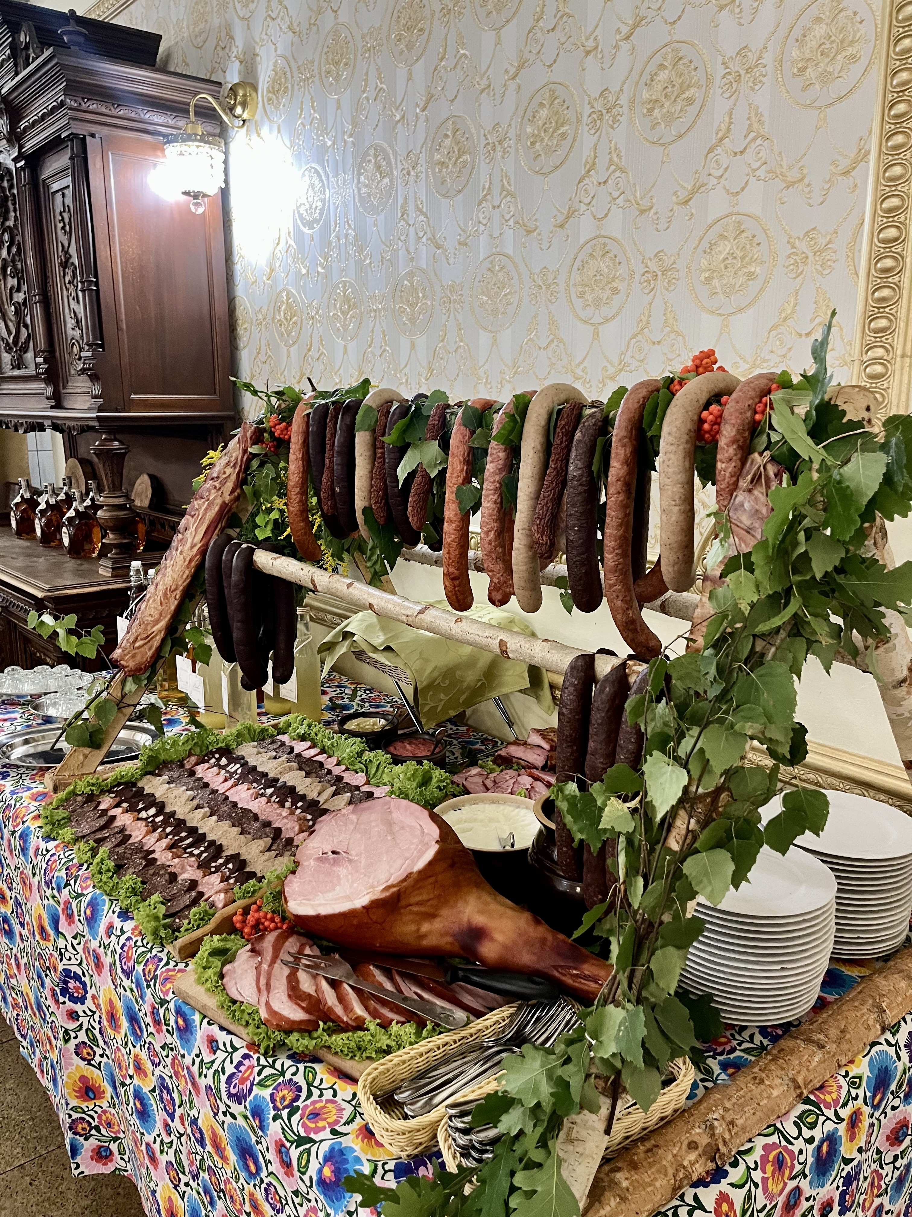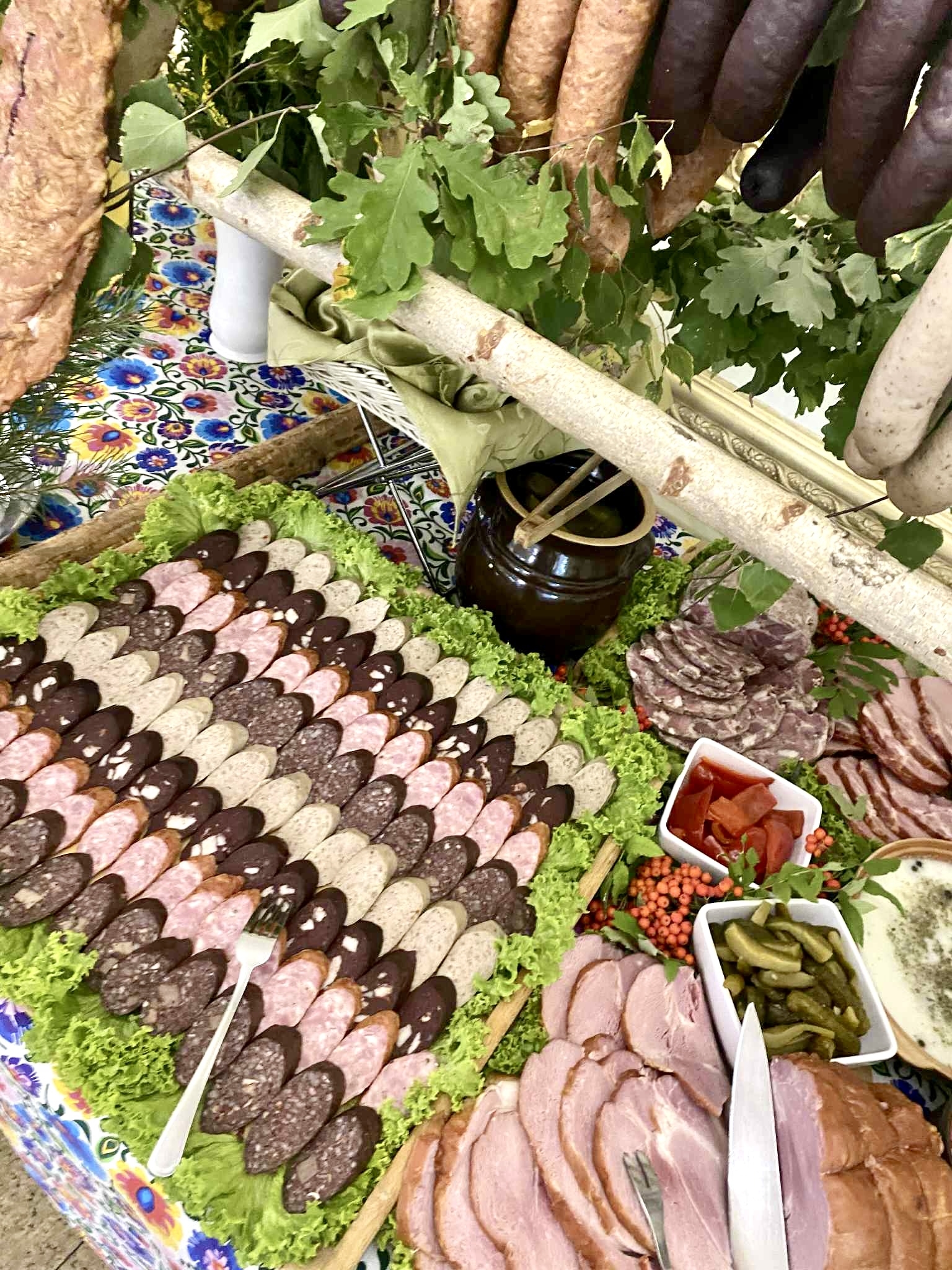 - stół wiejski z regionalnymi wyrobami wędliniarskimi „na bogato”;